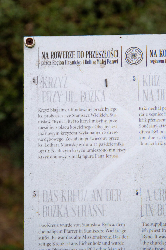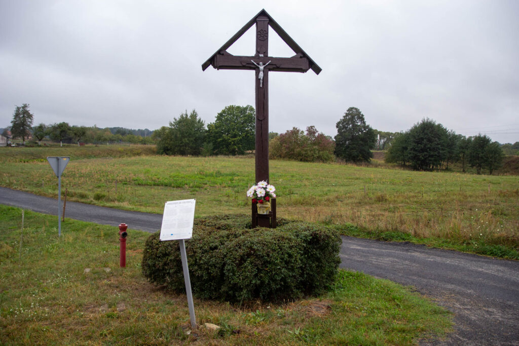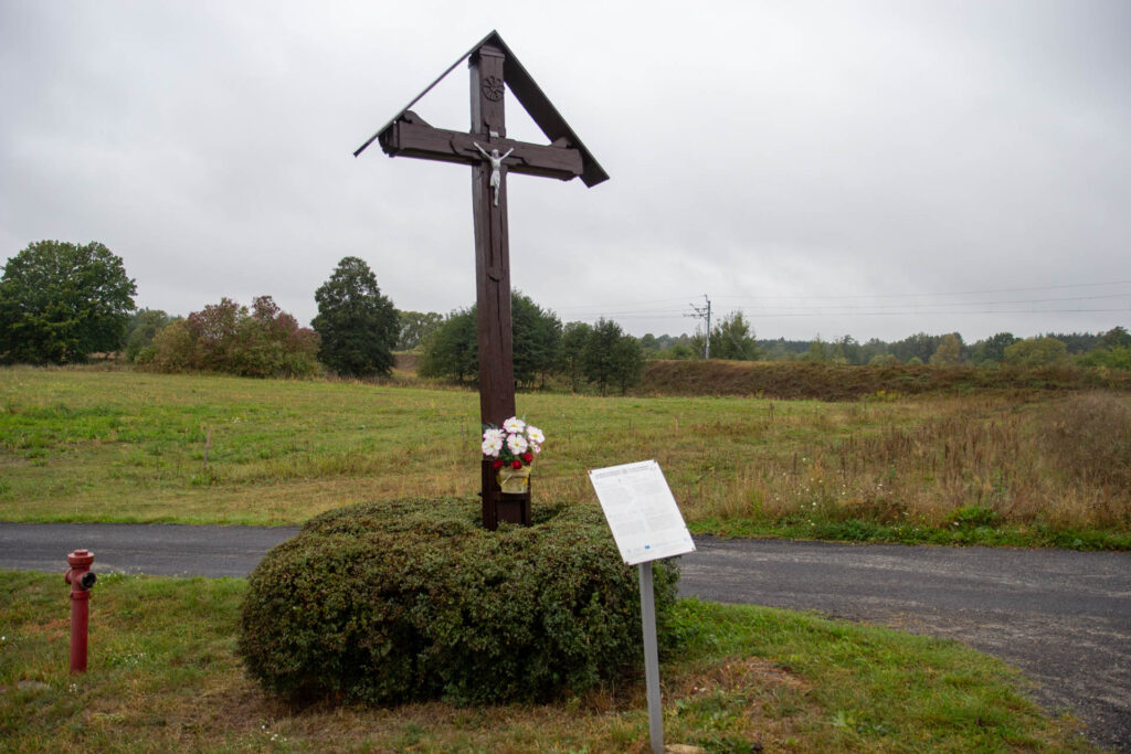Jest to dawny krzyż misyjny przeniesiony z placu kościelnego. Pierwotny krzyż pochodził z 19.07.1958 r., a obecny, dębowy został poświęcony 27.10.1973 r.